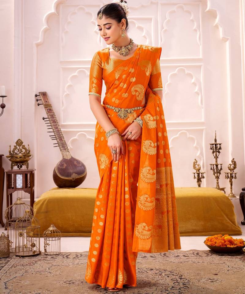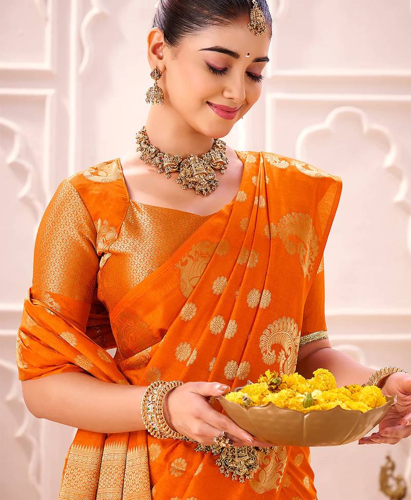 | Product Name | Orange Treditional Roop Silk Zari Weaving Saree | |