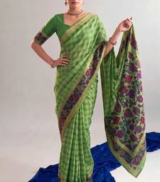 Parrot green viscose chanderi printed & zari weaving work saree