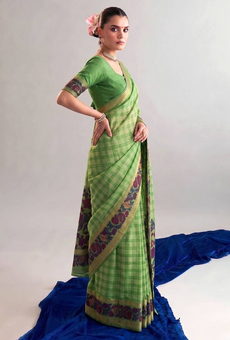 Product Name Parrot Green Viscose Chanderi Printed & Zari Weaving Work Saree