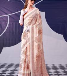 Peach classic beauty satin sik floral printed with smooth texture saree