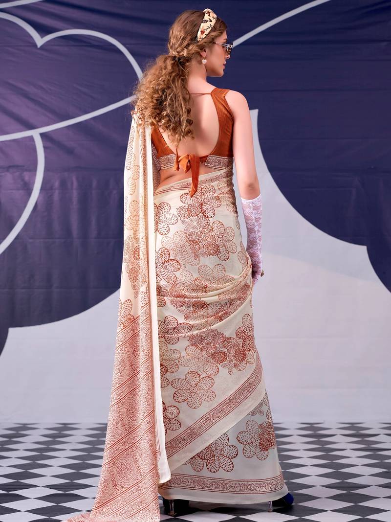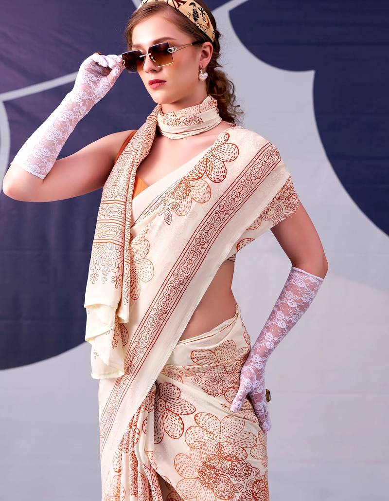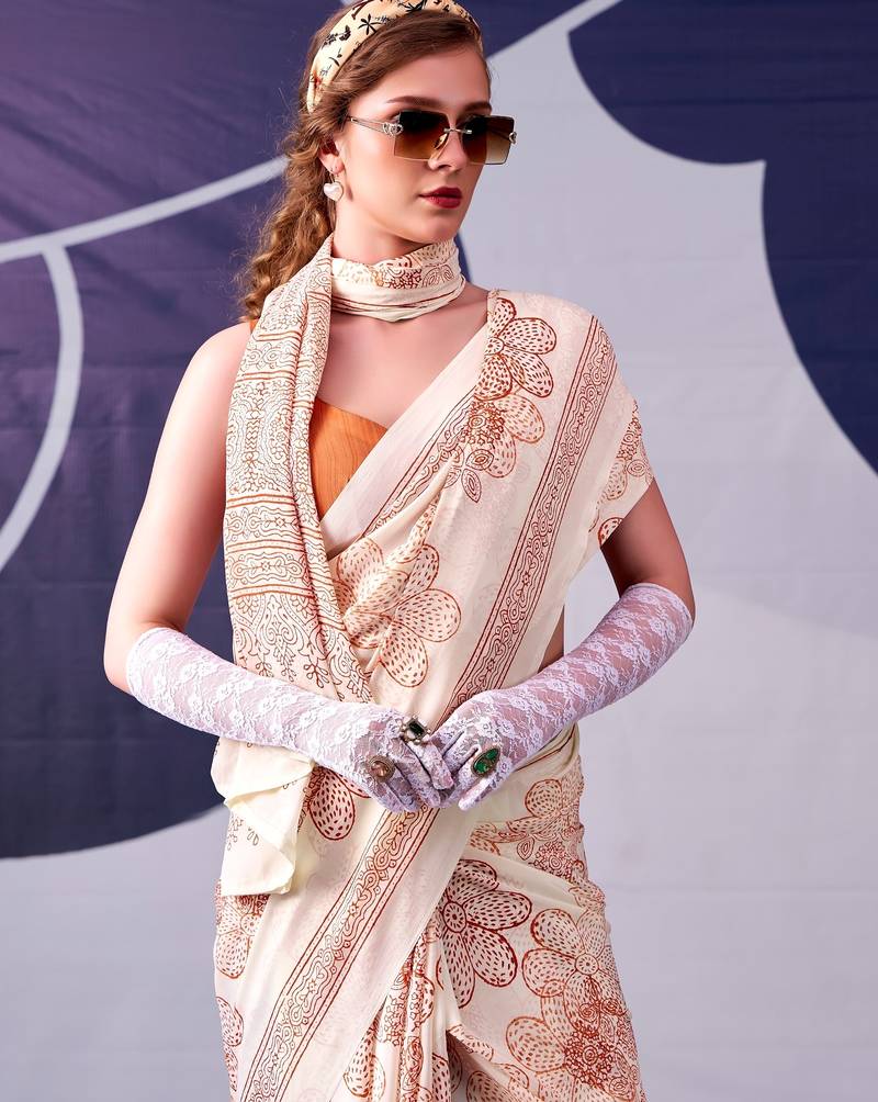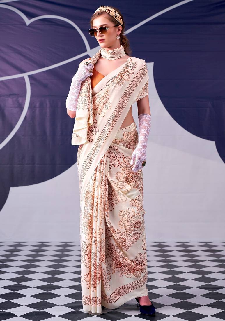 | Product Name | Peach Classic Beauty Satin Sik Floral Printed With Smooth Texture Saree | |