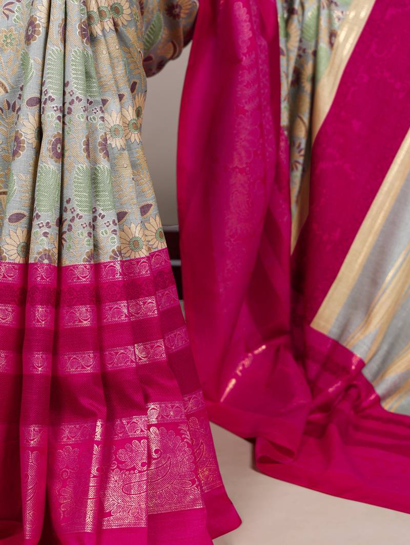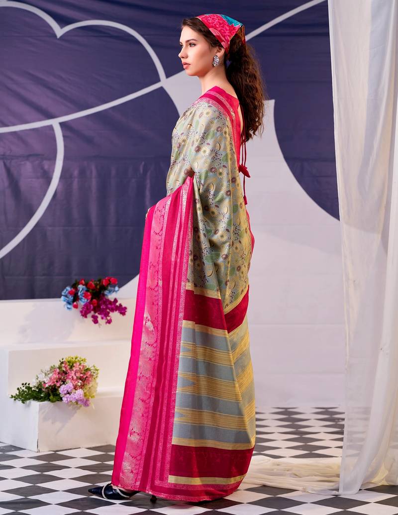 | Product Name | Pink Beautiful Tussar Silk Floral Print With Foil Work Saree | |