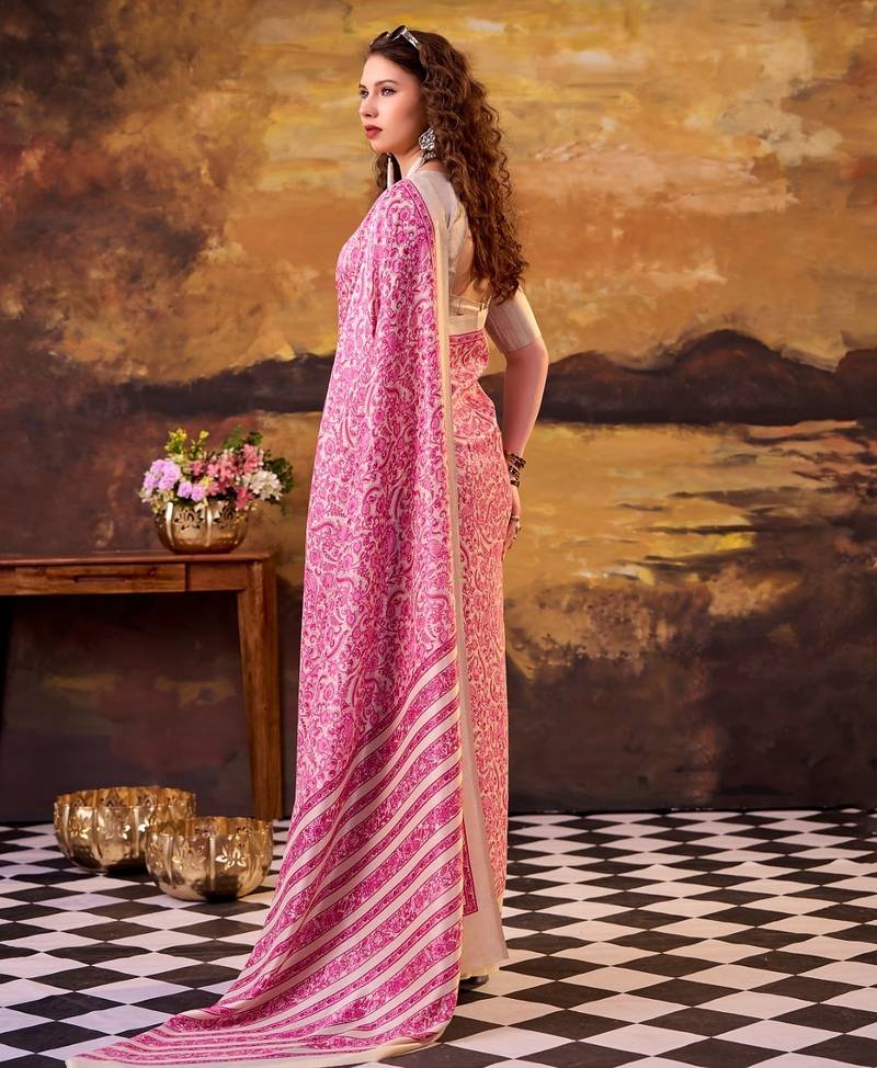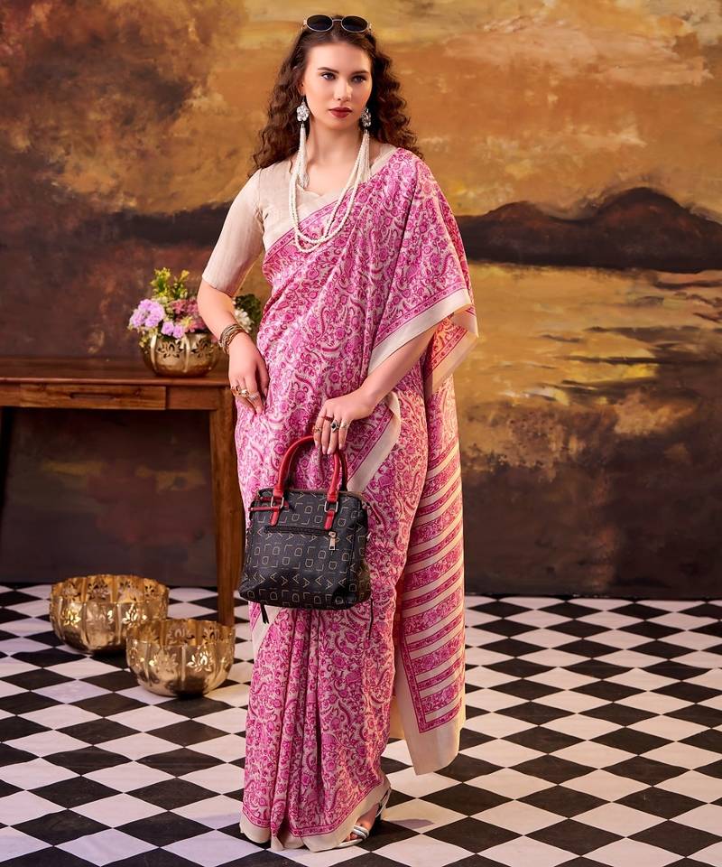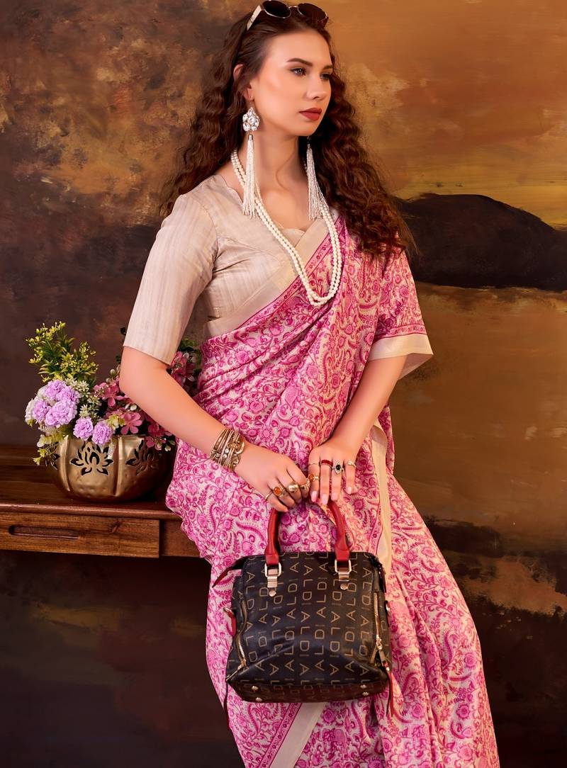 Product Name Pink Elegance Tussar Silk Printed Saree With Unstitched Blouse