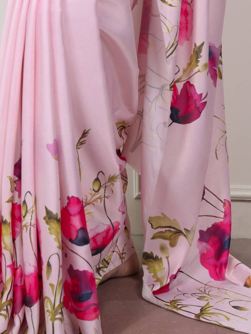 Product Name Pink Glamlook Satin Silk Printed Saree