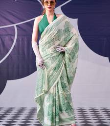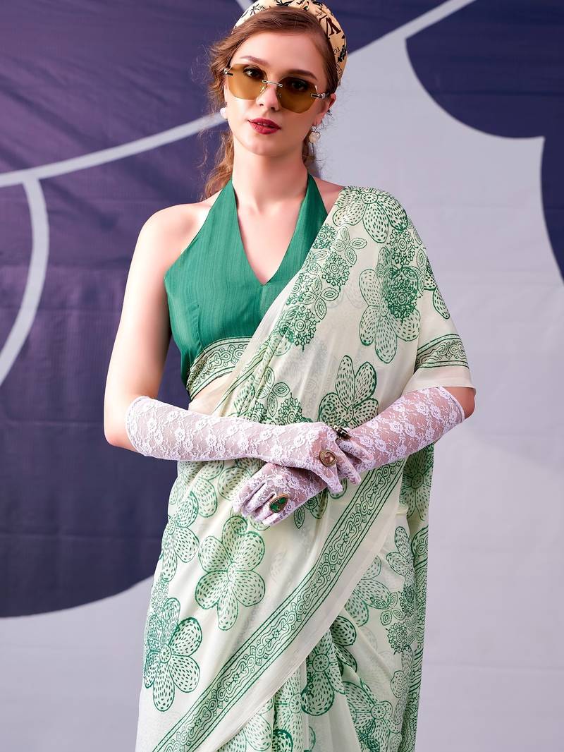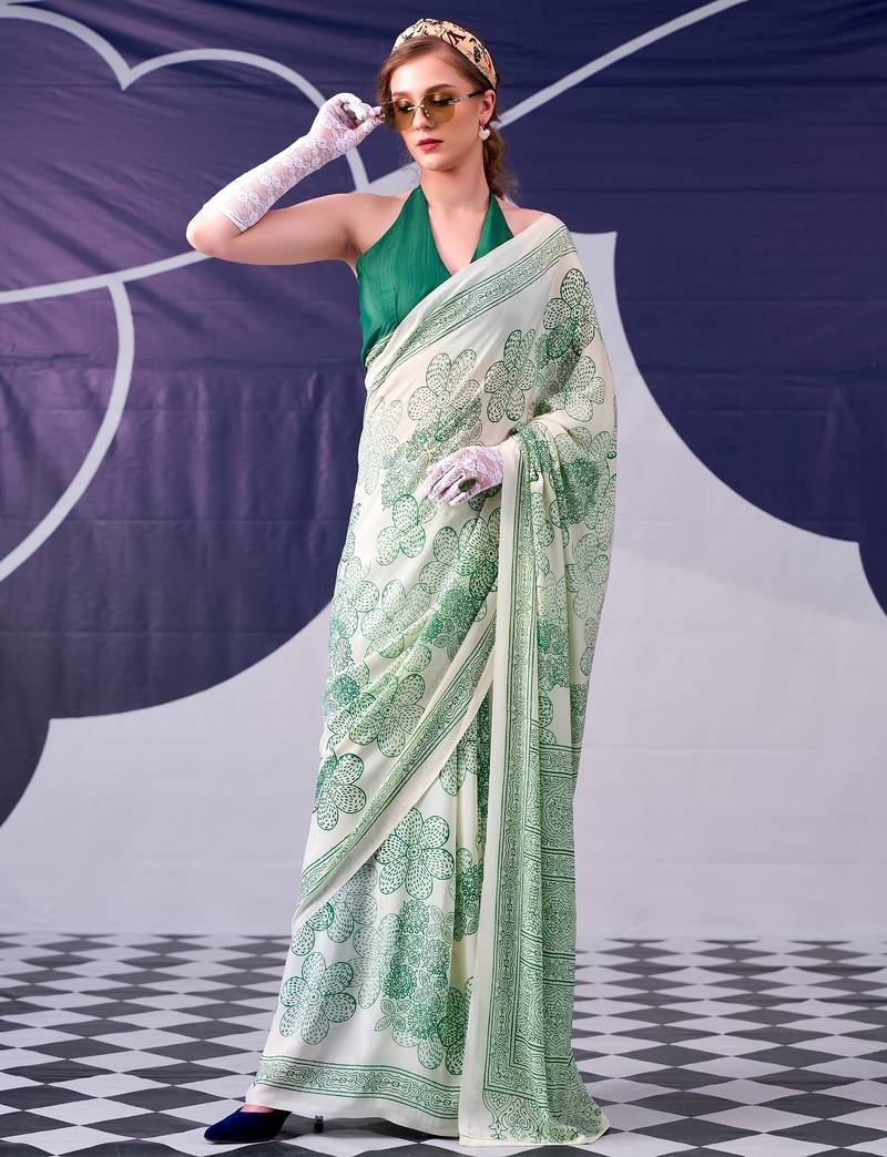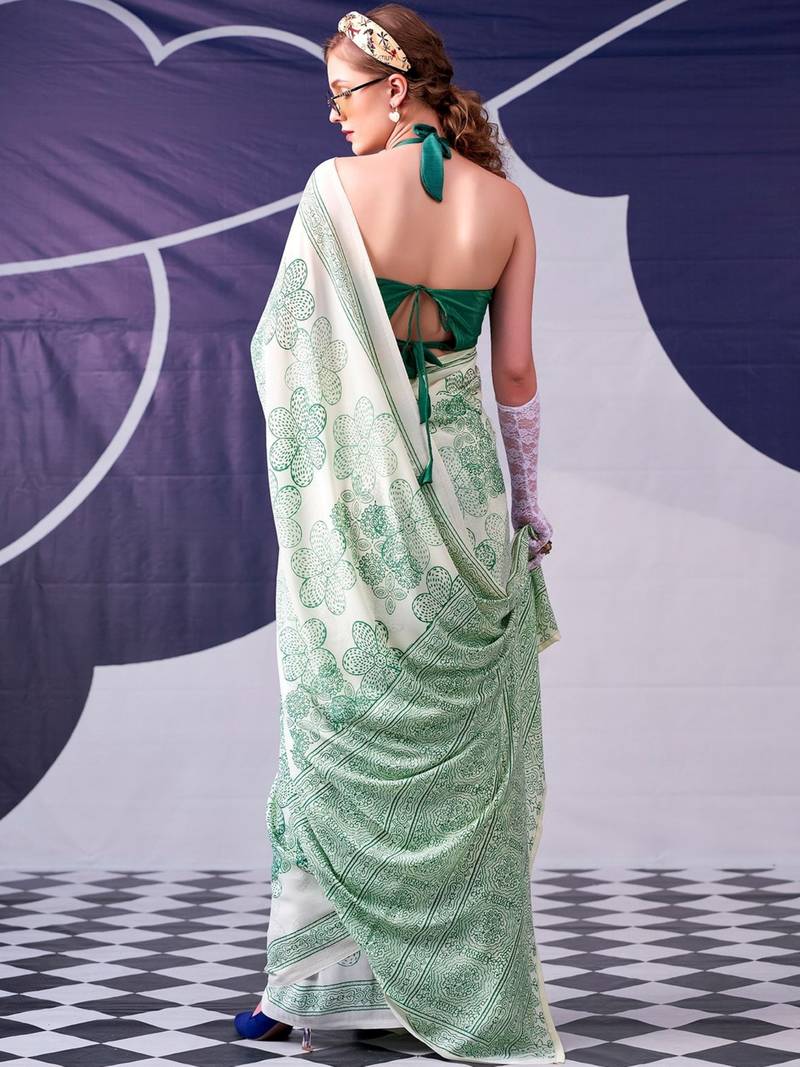 Pistachio classic beauty satin sik floral printed with smooth texture saree