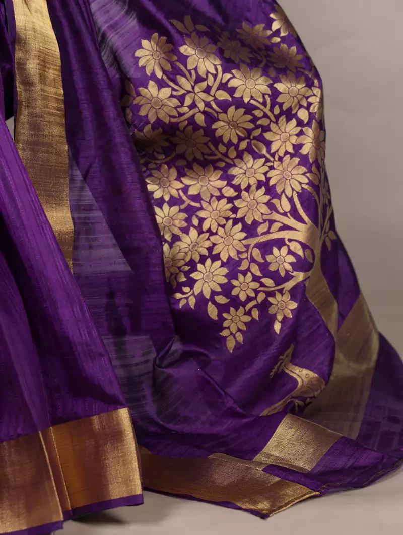 | Product Name | Purple Onam Special Raw Silk Zari Weaving Work Saree | |