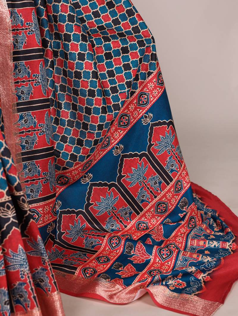 | Product Name | Red Elegant Tussar Silk Printed With Viscose Border Saree | |