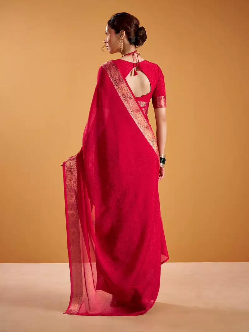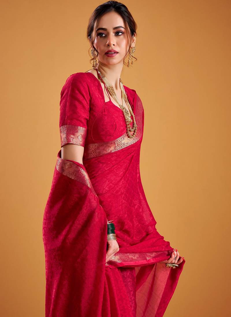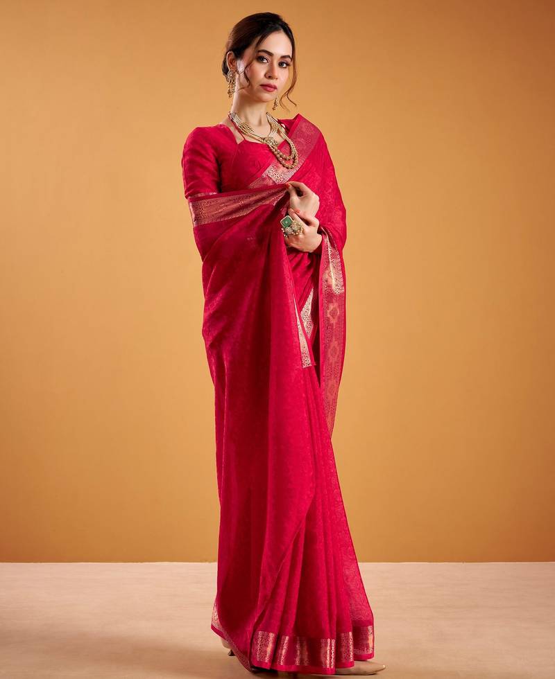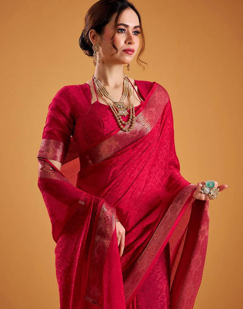 | Product Name | Red Festival Vibes Polt Shimmer Zari Weaving Work Saree | |