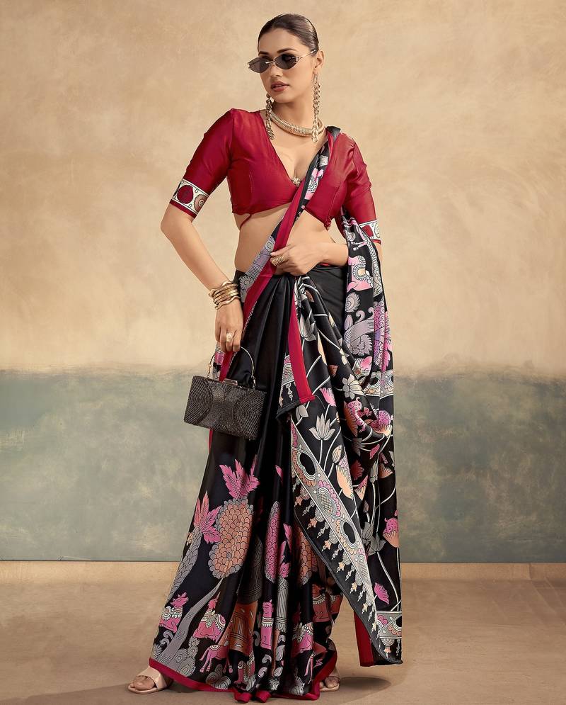 | Product Name | Red Luxurious Kalamkari Art Printed Satin Silk Saree | |