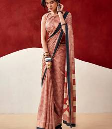 Rust orange soft dull silk fancy printed saree