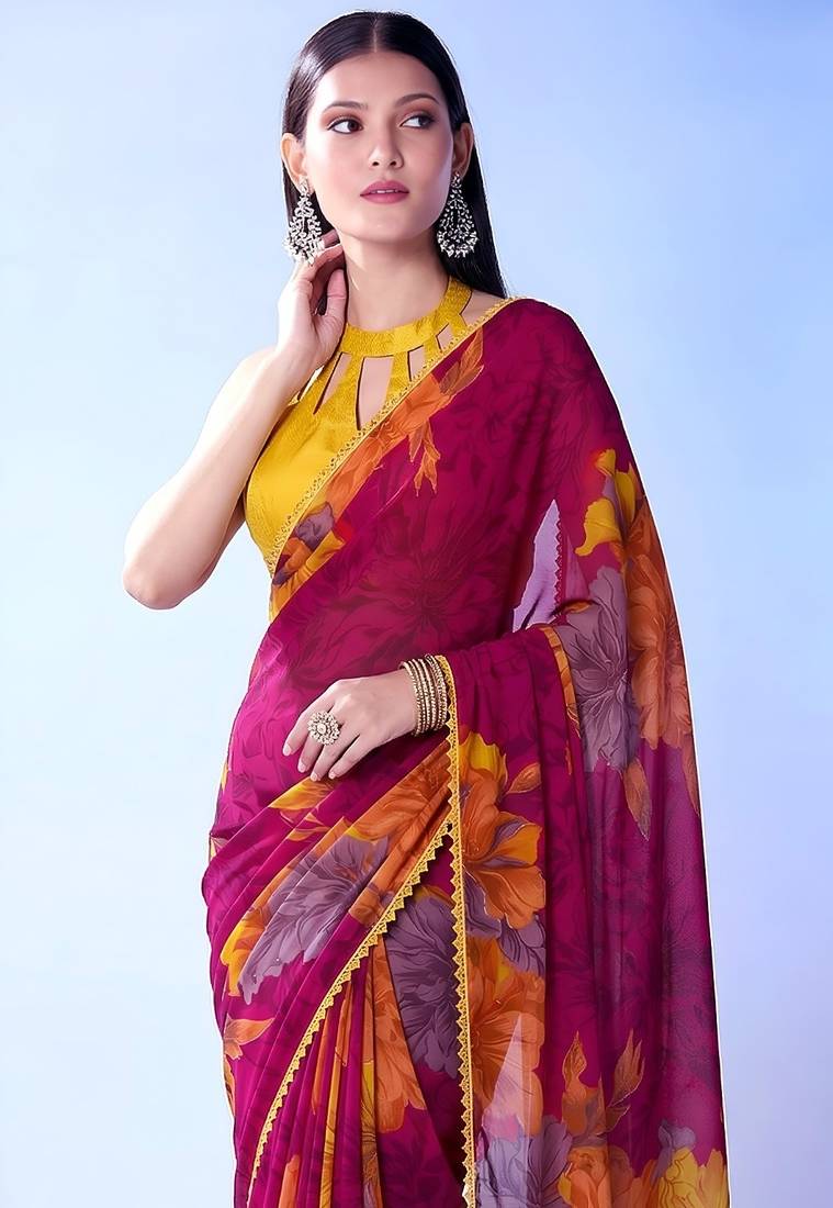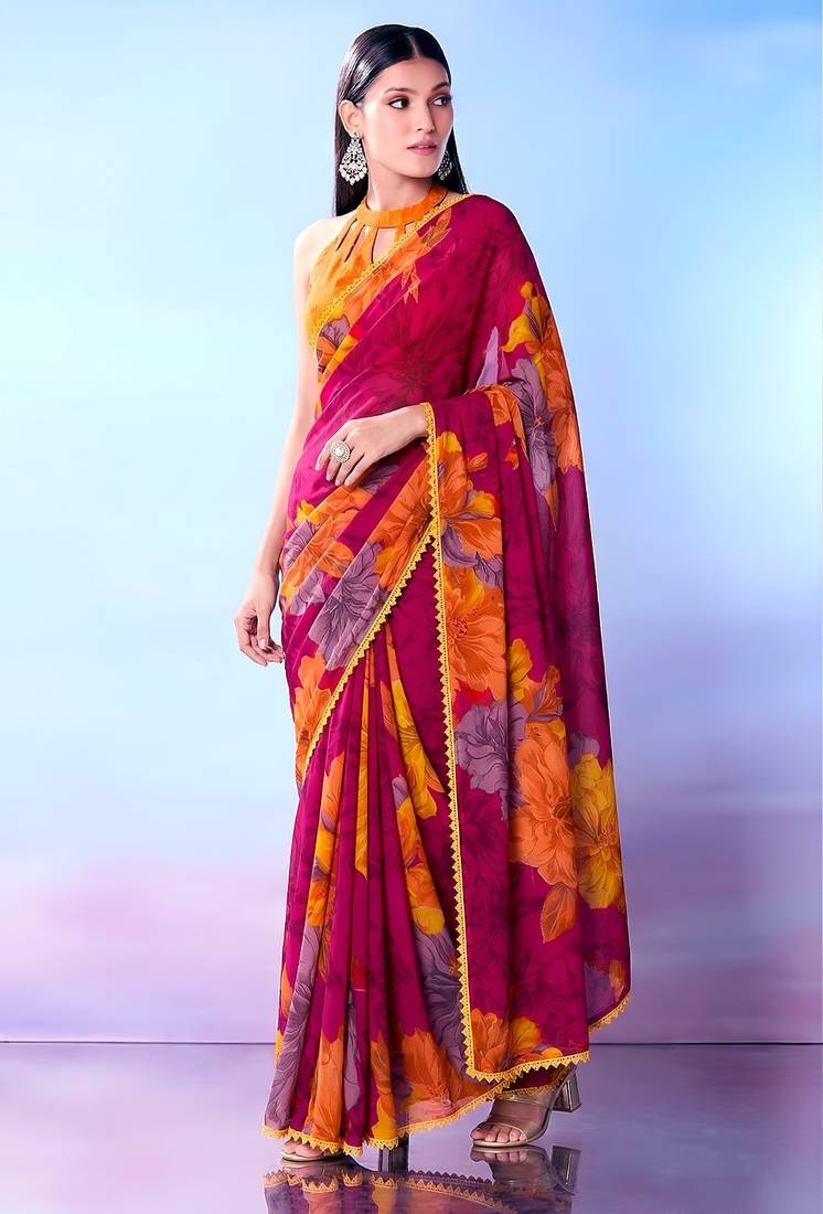 | Product Name | Rust Orange Weightless Marble Floral Printed With Lace Border Saree | |