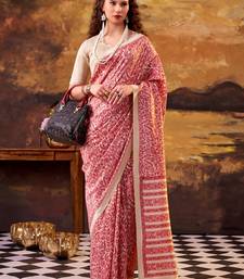 Salmon elegance tussar silk printed saree with unstitched blouse