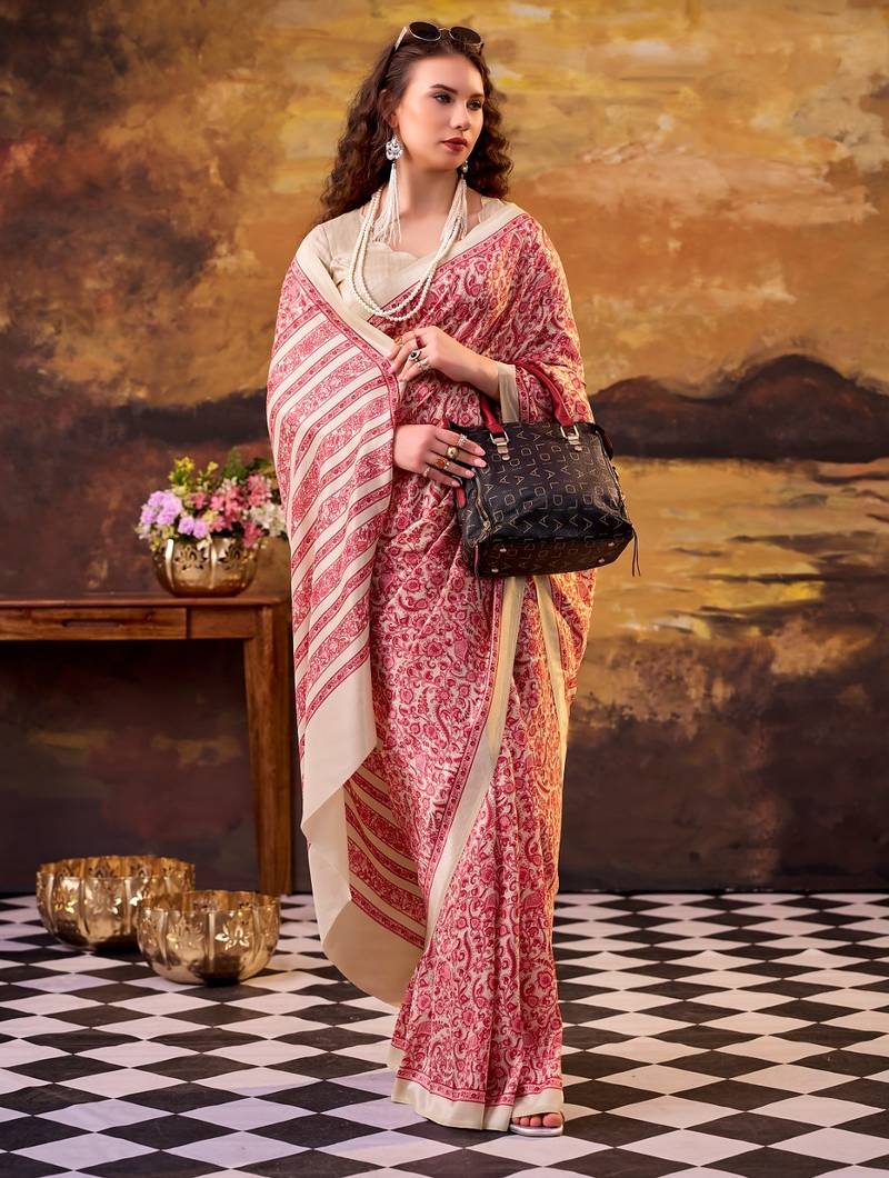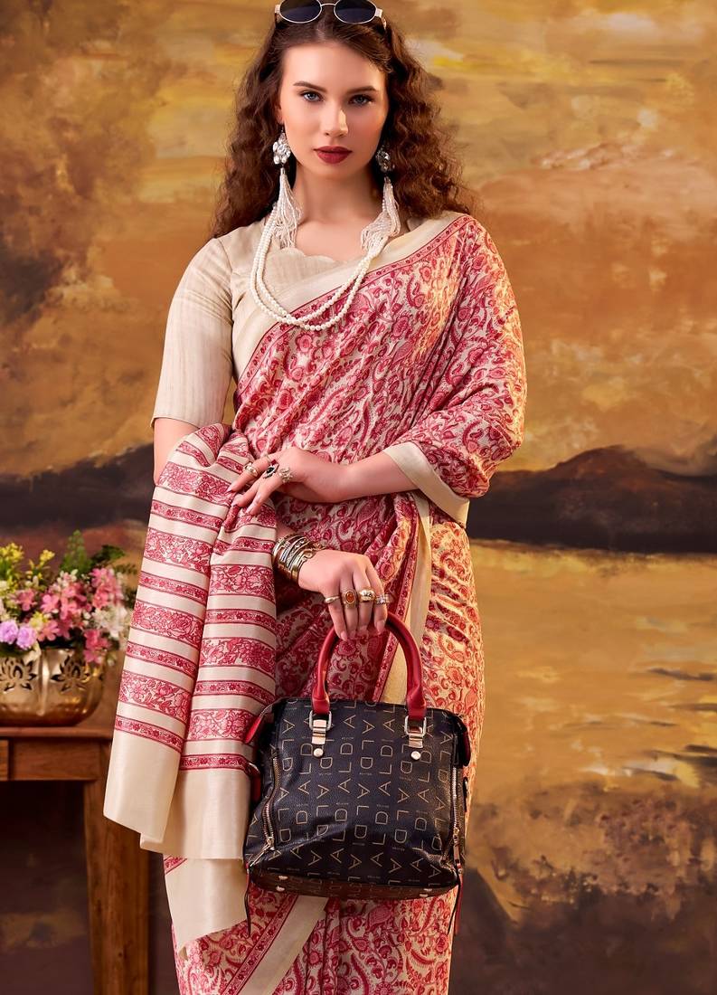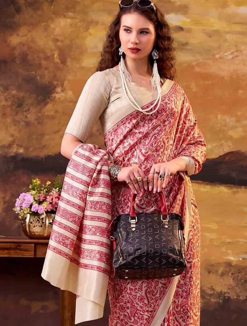 | Product Name | Salmon Elegance Tussar Silk Printed Saree With Unstitched Blouse | |