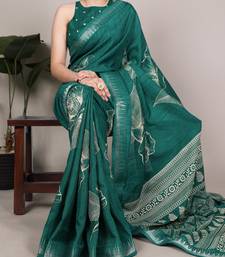 | Product Name | Sea Green Slub Silk Foral Printed With Zari Border Work Saree | |
