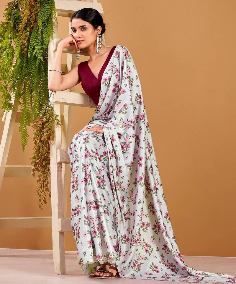 | Product Description | A Saree That Blends Floral Charm With Satin Smoothness. Saree