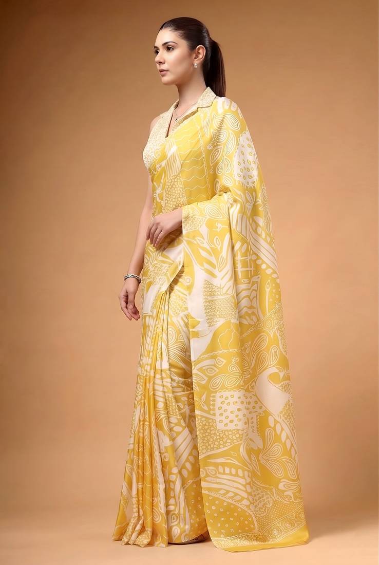 | Product Name | Yellow Silky Elegance Satin Silk Printed Saree | |