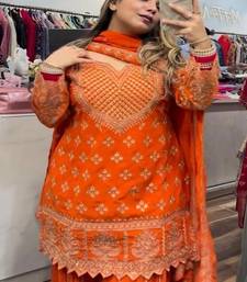 | Product Name | Orange Embroidery Chinnon Silk Fully Stitched Sarara Palazzo Suit Set | |