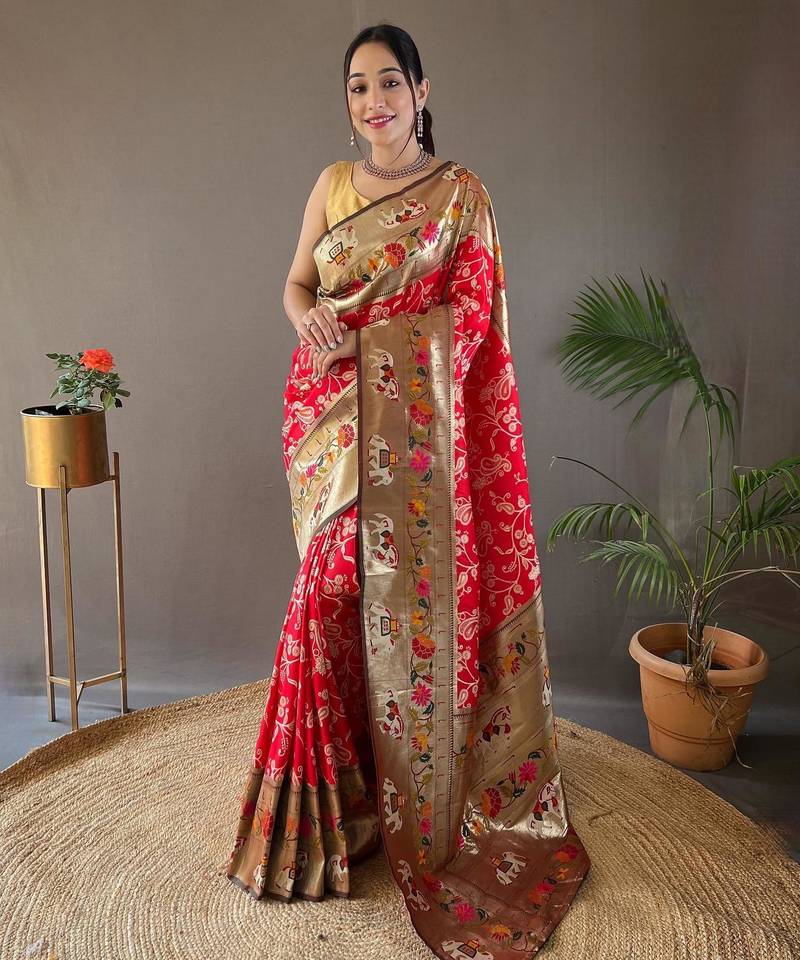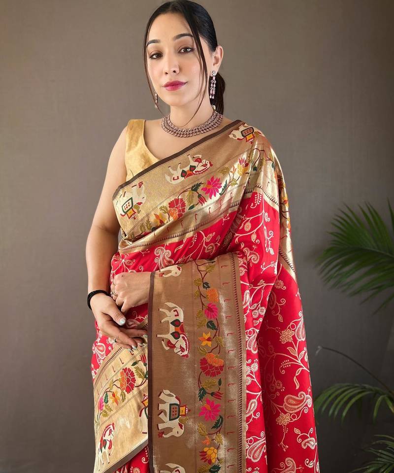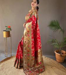 Red art silk woven saree