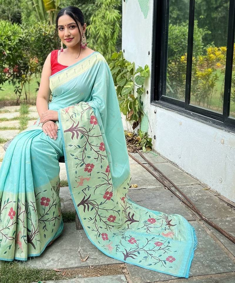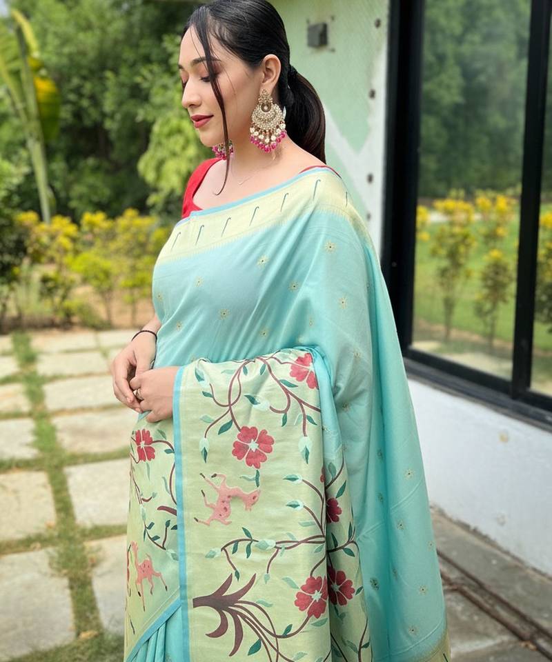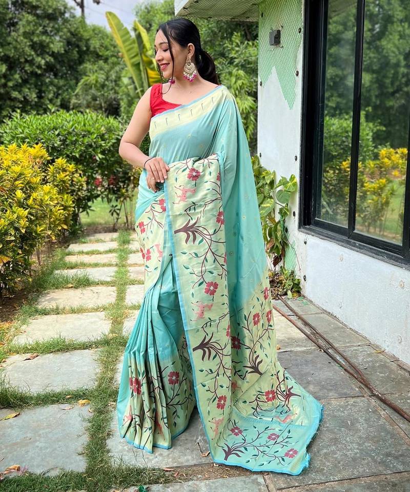Sky blue art silk woven saree