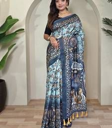 Sky blue art silk woven saree