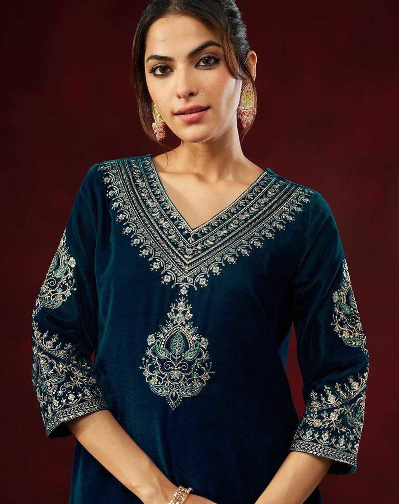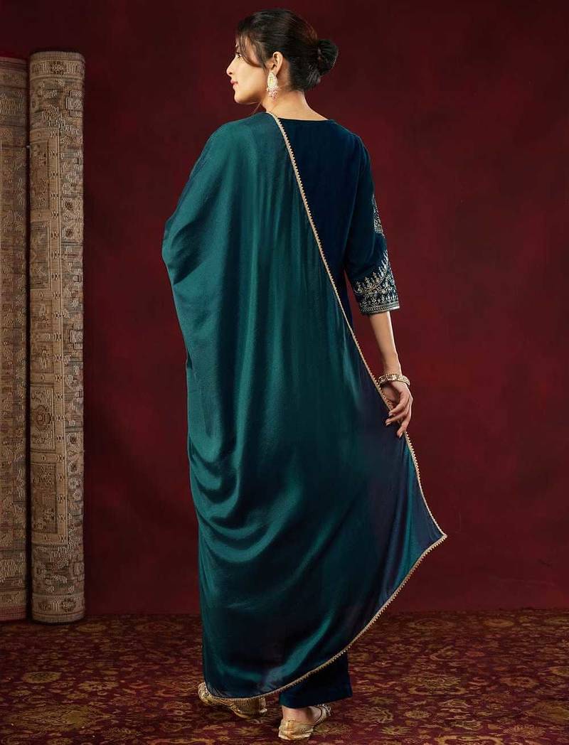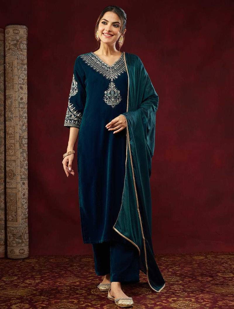 | Product Name | Ethnic Motifs Embroidered Sequinned Velvet Kurta With Trousers & With Dupatta | |