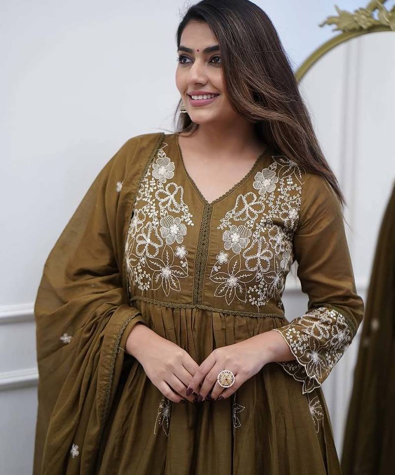 | Product Name | Women Floral Embroidered Panelled Thread Work Kurta With Trousers & With Dupatta | |