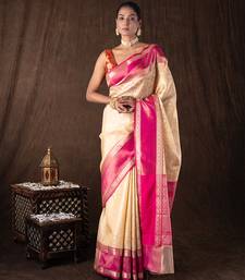Cream handloom pure silk saree